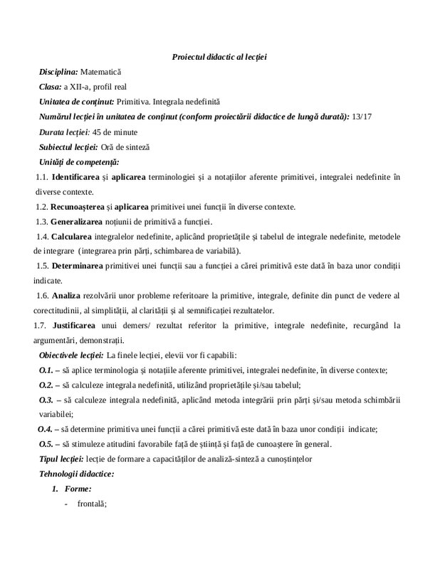 Clasa 12 Re Integrala Nedef Lecția 8