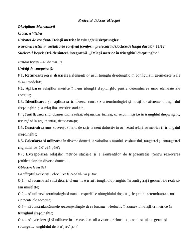 Clasa 8 Relatii Metrice În Triunghi Dreptunghic Lectia 9