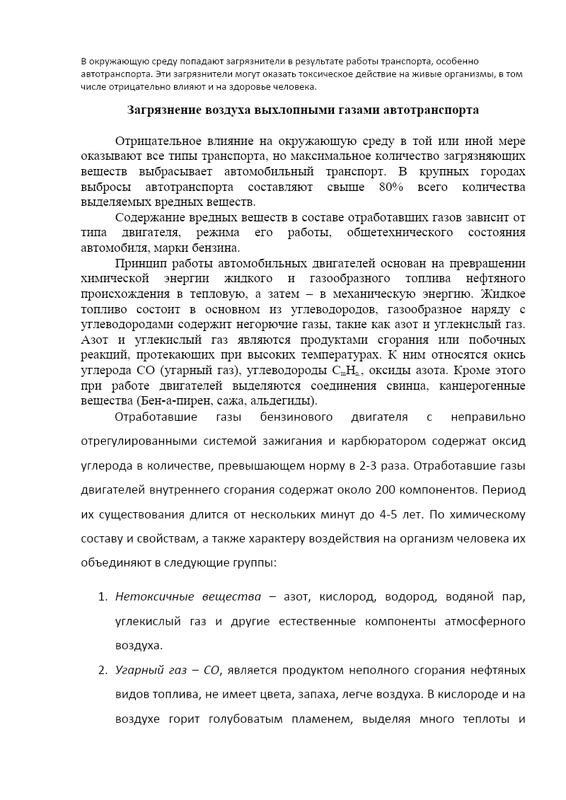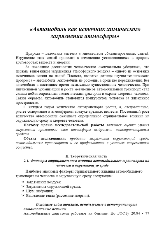 Автомобиль Как Источник Химического Загрязнения Атмосферы