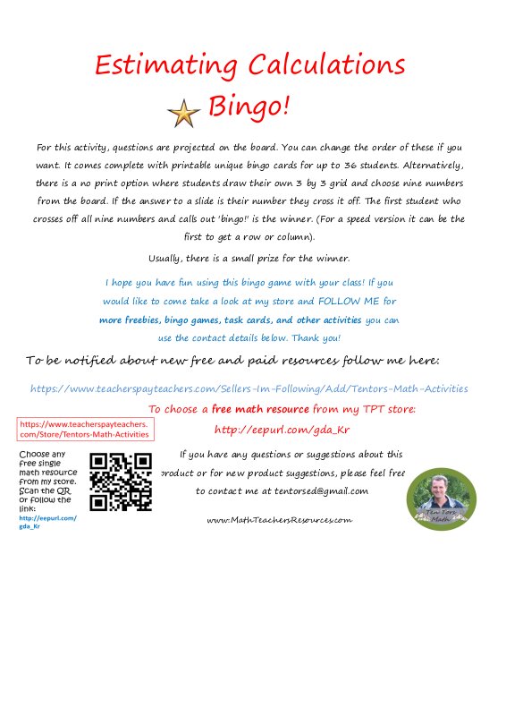 Estimating Calculations Bingo