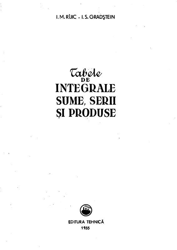 Tabele De Integrale, Sume, Serii Si Produse I. M. Rijik, I.S. Gradstein (1955)