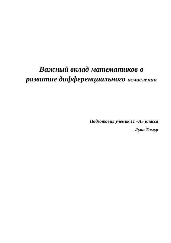 Важный Вклад Математиков В Развитие Дифференциального Исчисления Лука