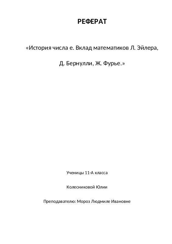 Колесникова История Числа Е