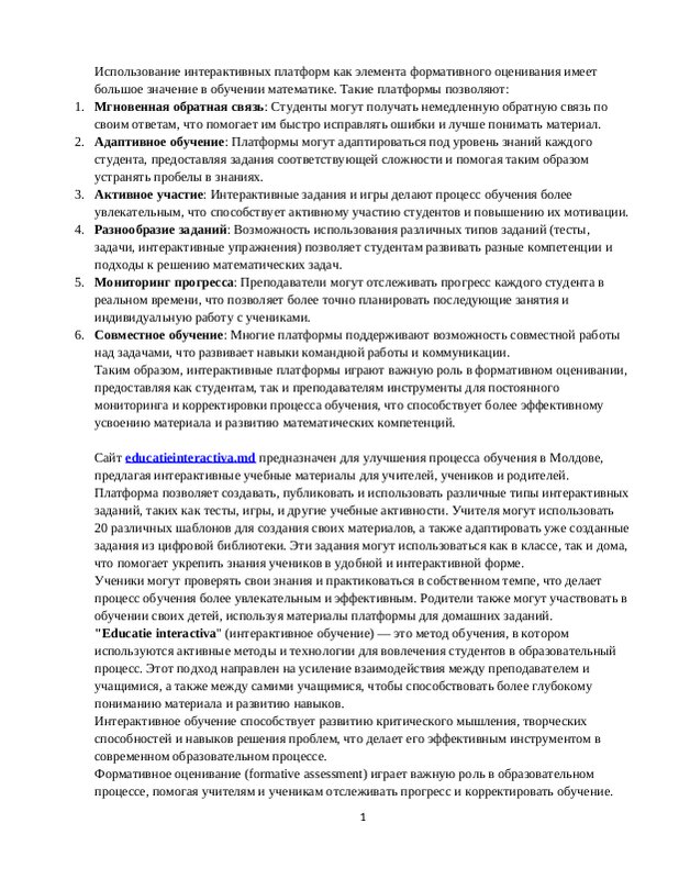 Эффективность Упражнений На Уроках Математики С Применением Платформы Educatieinteractivă